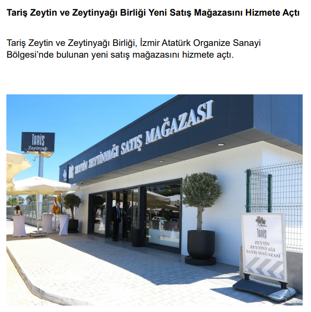 “Tariş Zeytin ve Zeytinyağı Birliği olarak hem geleneksel üretim anlayışımızı koruyor hem de dijital dünyaya uyum sağlıyoruz. E-ticaret alanında gerçekleştirdiğimiz yatırımların bu ödülle taçlanması bizler için büyük bir onur. Tüm üretici ortaklarımız adına gururluyuz.”