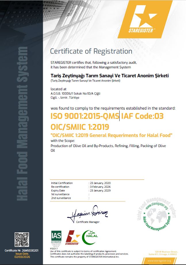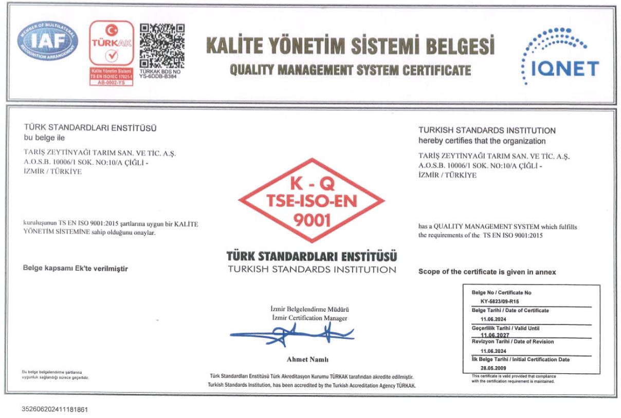 Tariş Zeytin İşletmesi TSE-EN-ISO 9001/2000