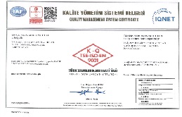 Müşteri beklentilerinin en iyi şekilde karşılanması, proses kontrolünün, kalitenin sürekliliğinin sağlanması ve geliştirilmesi amacıyla 1998 yılında başlanan çalışmalar neticesinde Türk Standartları Enstitüsünden ISO 9002 Kalite Güvence Sistemi Belgesini almaya hak kazanmıştır.