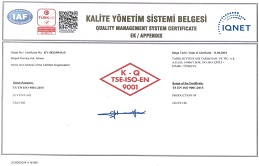 2010 yılında TSE-EN-ISO 9001:2008 standardına geçilmiştir.