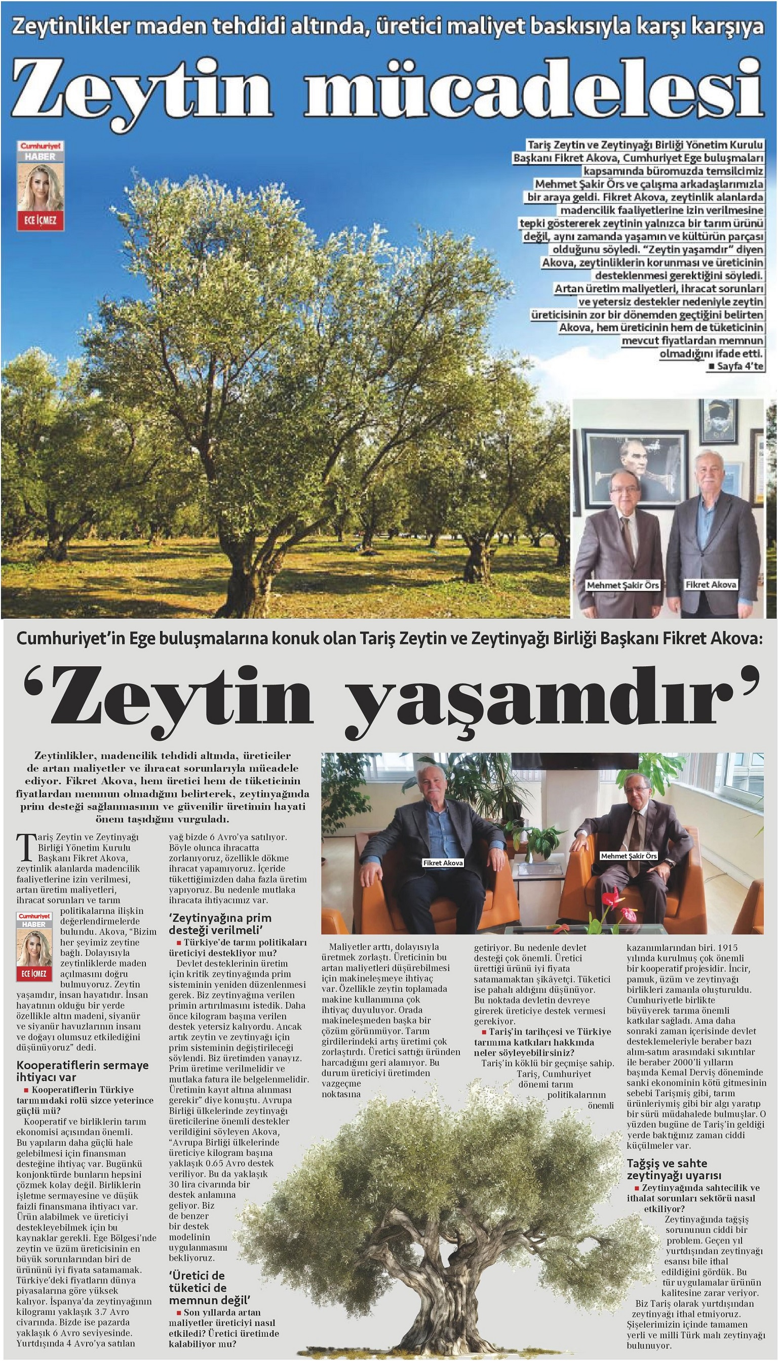 Tariş Zeytin ve Zeytinyağı Birliği Başkanı Sayın Fikret Akova'nın konuk olduğu, Bloomberg HT'de yayınlanan Akıllı Tarım programını izleyebilirsiniz.